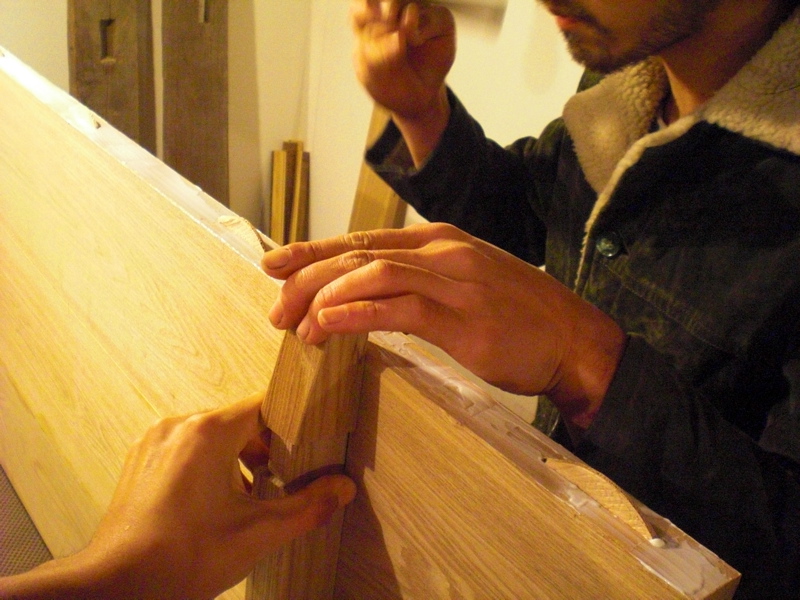11/4 朝6時、仕事お手伝い開始。4台のテーブルを昼までに仕上げ納品するとのこと。かなりカツカツだ。残る作業は組み立てと磨きで白木仕上げ。久々の家具製作ということで新鮮な気持ちになれる。新しい家族の猫のカモちゃんも見守ってくれている。
