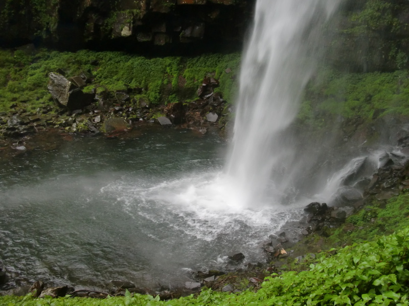 滝のちょい裏手にも回れます。しかしびしょ濡れ。