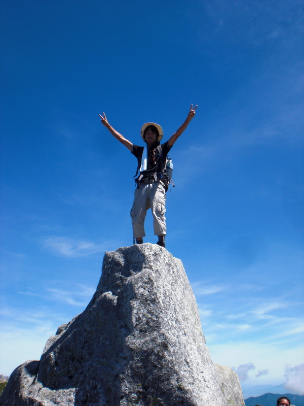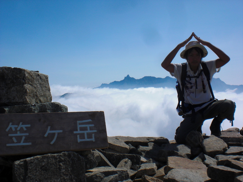 雲海に浮かぶ槍をバックに一枚。やっぱ槍はかっちょいー!