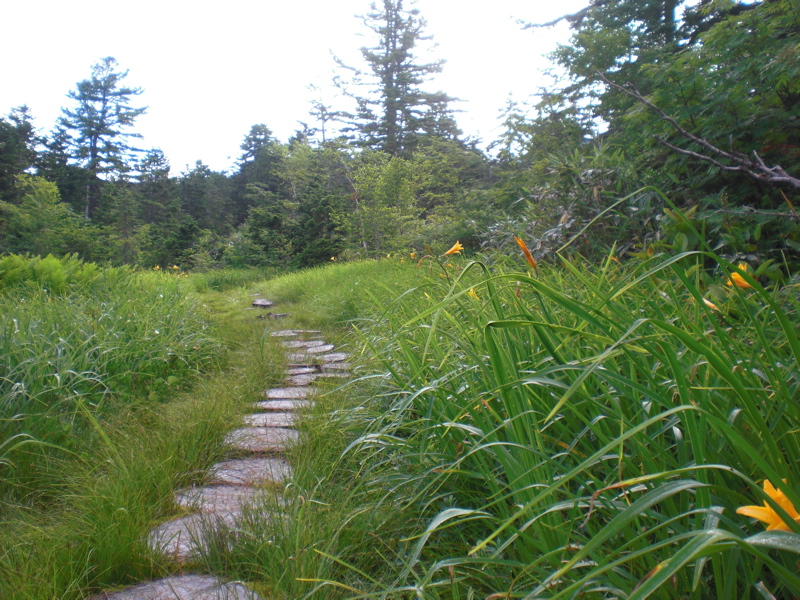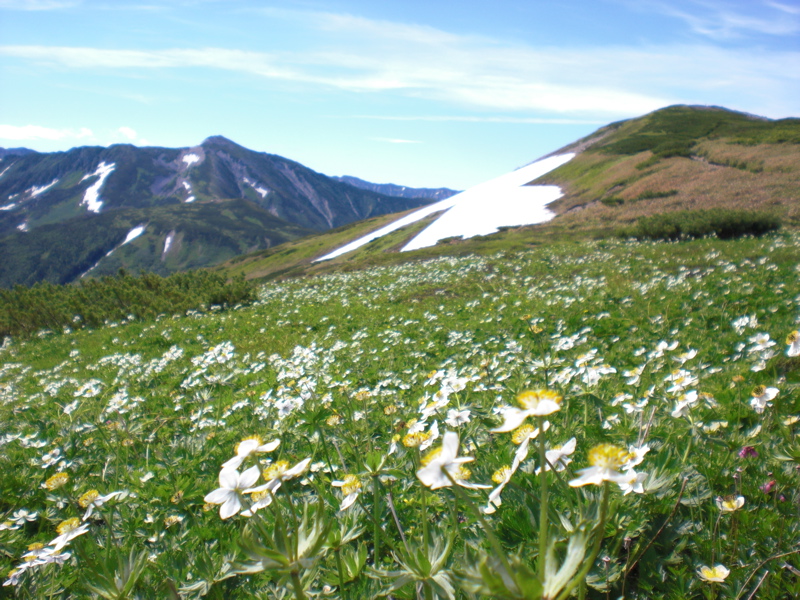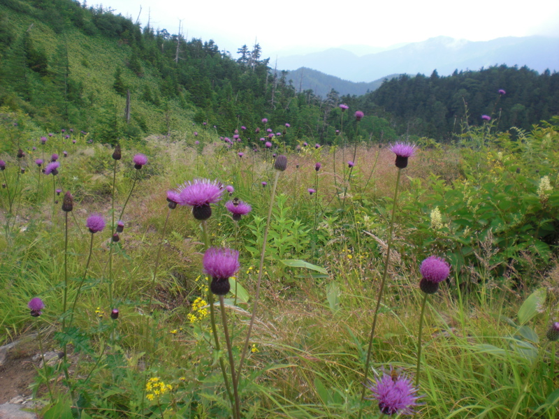 抜戸岳に寄り杓子平まで下る。ここは高山植物で彩られている。