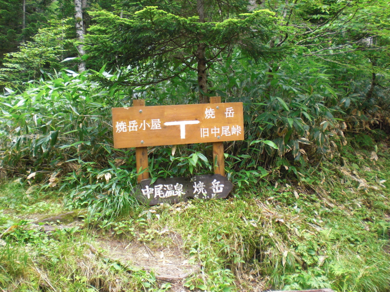 すぐ山小屋との分岐にぶつかる。寄ることも無いので右の旧道へと進む。