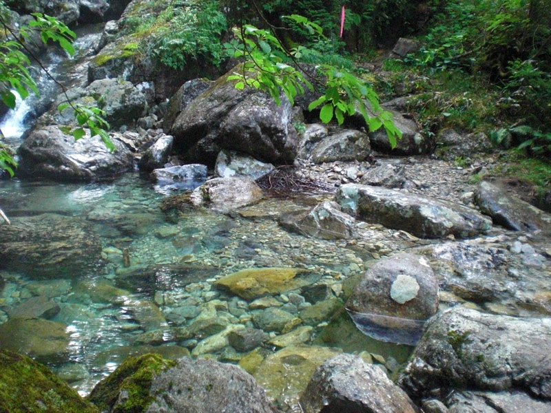 事前に登山指導センターに問い合わせたところ、石の上を渡っていく程度の水量とのこと。徒渉用の靴を持ってこなかったので助かりました。