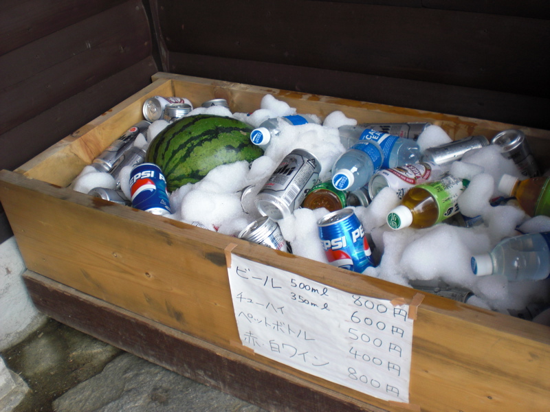 入り口には残雪でキンキンに冷えた飲料類。素敵な山価格です。