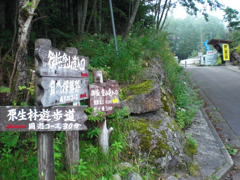 いくつかあるルートのうち岐阜県側、濁河(にごりご)温泉からにします。濁河温泉は日本一標高の高い温泉街としても有名ですよね!ここが標高1800M、御嶽山が3067Mなので1200強の高低差。