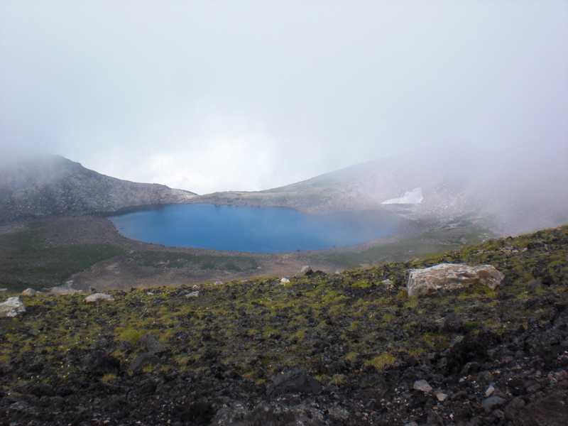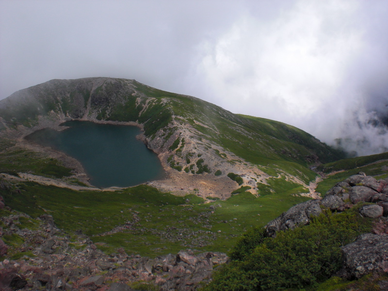 悲しいかな山頂間際からガスって視界ゼロ。ちょこっと見えた権現池。