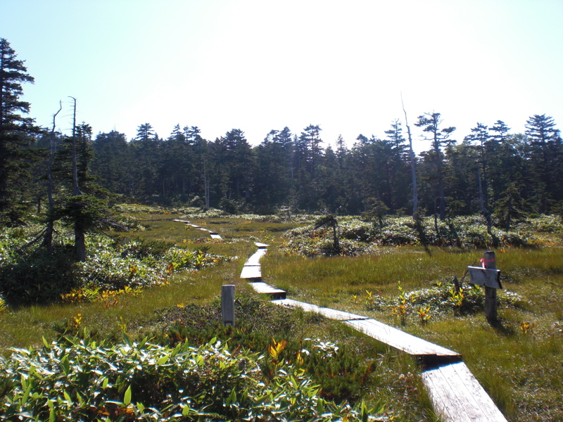 視界が開けた千町ヶ原。どうやらこのあたりは湿原みたいだ。さっきの倒木も自身の重みを地面が支えきれなかったんだろーな。