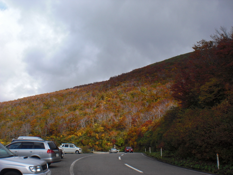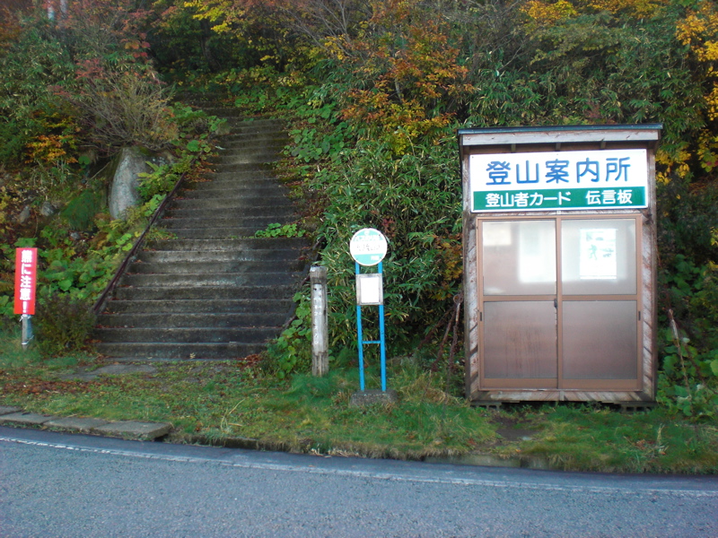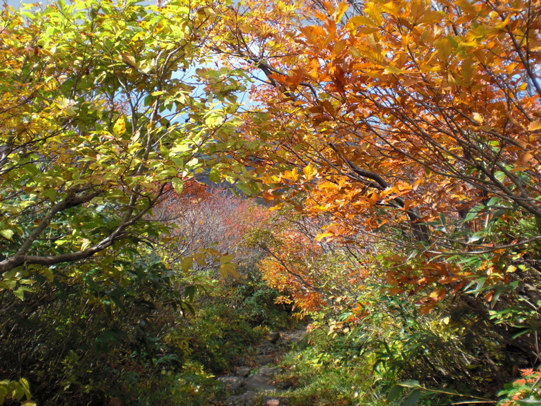 今回は無料化されて久しい鳥海ブルーラインの中腹、大平登山道からのアプローチ。登山口は標高1080m、7:20に登山届けを出し出発!すでに紅葉真っ盛りの木々の中は秋を満喫させてくれます。