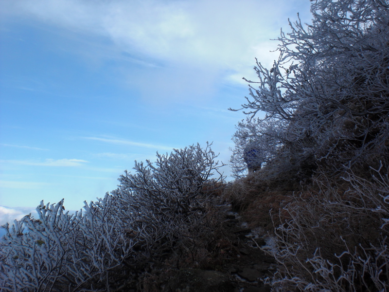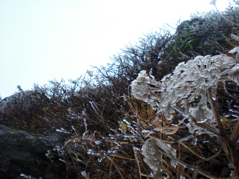 北斜面だからなのか一面の並木も凍ってる。なかなかの絶景ですよ!高所は霜が下りてますがまだまだ、山頂付近はこんなのじゃ無かったです。