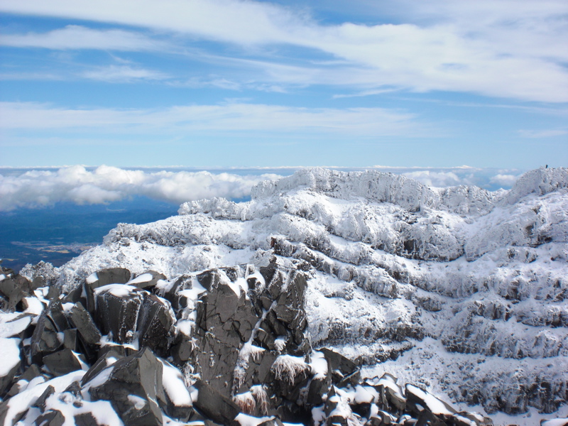 10:00鳥海山制覇です。単独峰だけあって開けた視界が目を奪い寒さも忘れます。頂上からは雪の白と下界の紅葉との色のコントラストがめっちゃ奇麗でした。いい時期に登れてラッキーでしたよ。
