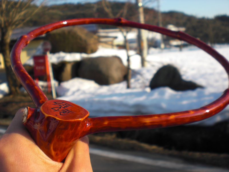 曲げ木の様にツノを曲げ、しかも漆で仕上げていてめっちゃ綺麗です。