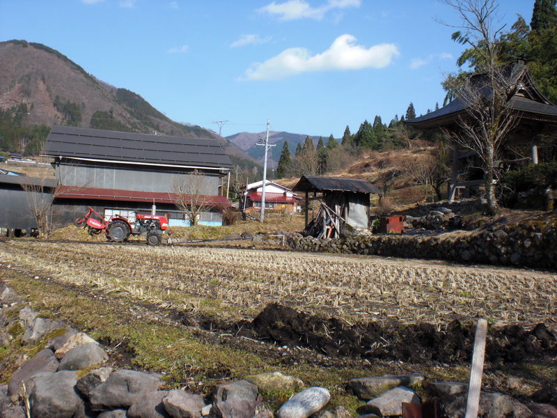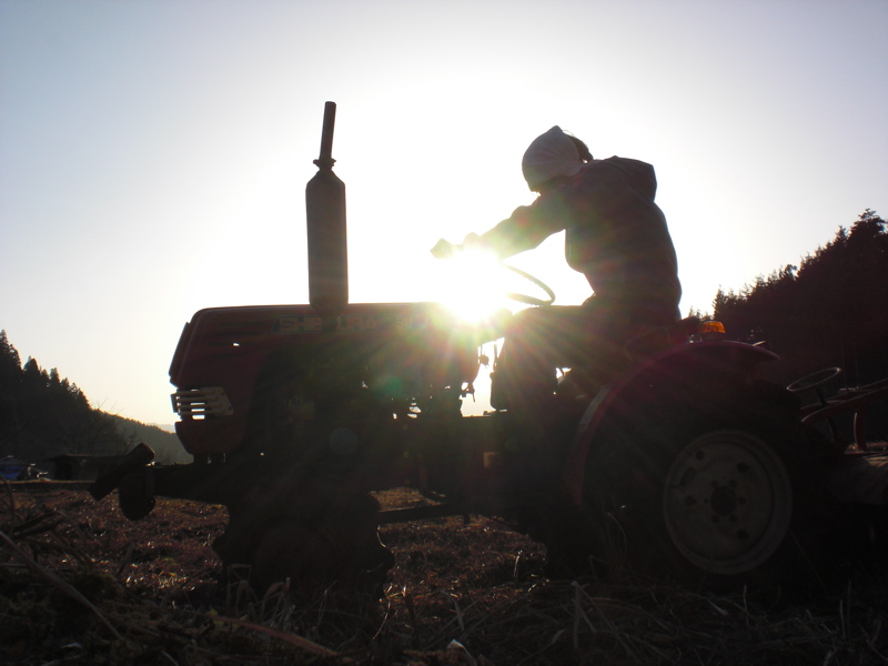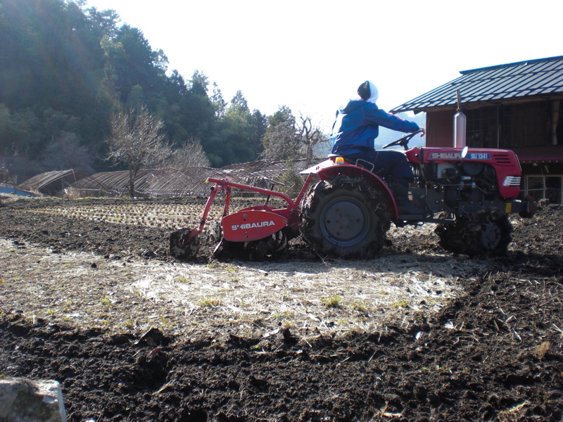 春もすぐそこ、今日は仕事終えてから苗床の田打ちをしました。